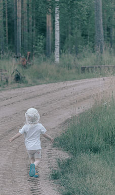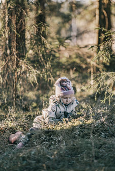 Lapsi- ja perhekuvaus luontomiljöössä. Perhe saa omatoimisesti toimia luonnossa ja ihmetellä lapsen kanssa luonnosta löytyviä asioita.